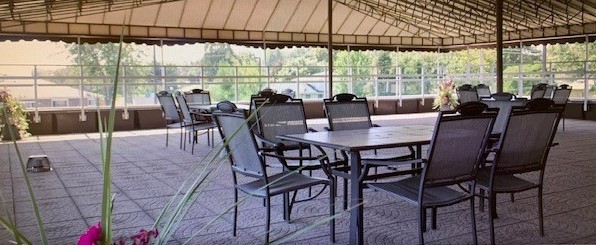 The LMH spacious 2nd floor terrace, located at the end of the south hallway, offers a beautiful outdoor setting for larger gatherings during the warmer seasons.