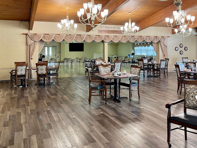 Each floor within our Long-Term Care Home offers a comfortable lounge space designed for smaller, more intimate gatherings.
